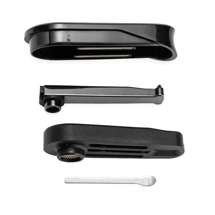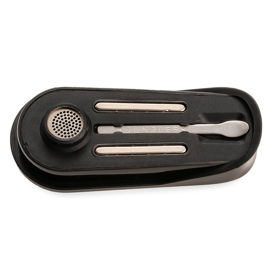 The Boundless CFX+ is easy to load and unload with the magnetic mouthpiece and metal stirl tool that sits conveniently on its underside.