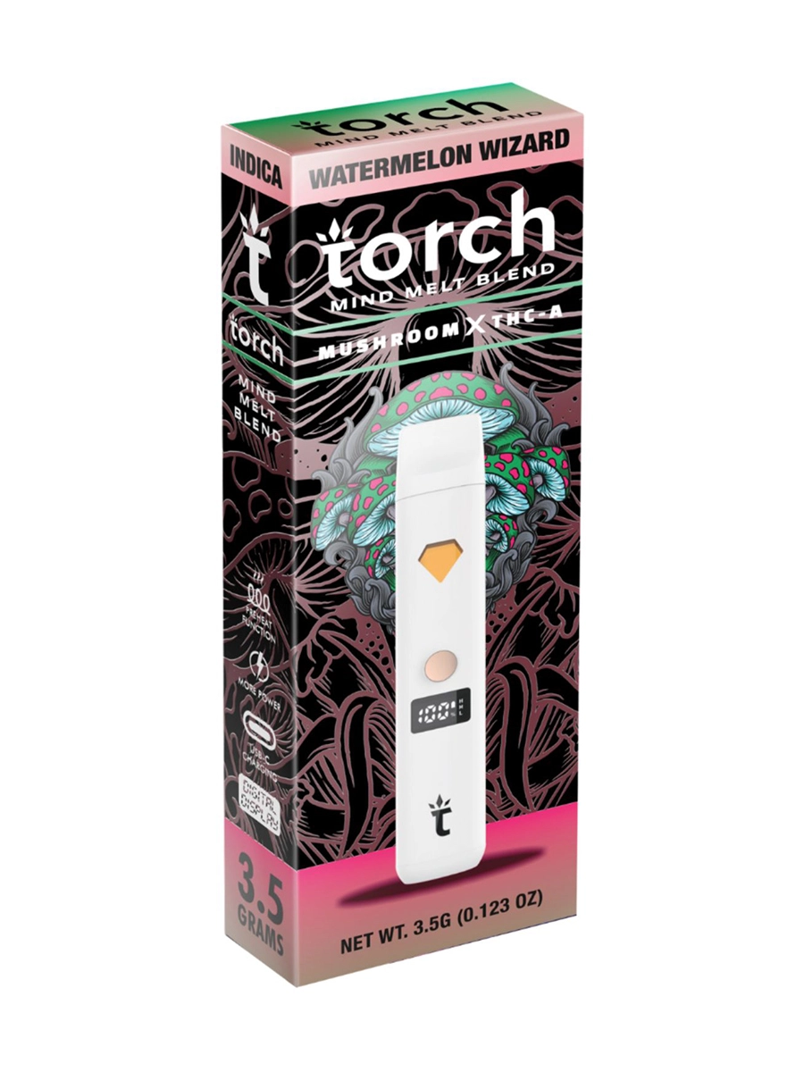 Premium Blend: Watermelon Wizard Torch Mind Melt vape features a meticulously crafted blend of watermelon flavor, THC-A, and mushroom extracts. Each ingredient is carefully selected for its quality and potency, ensuring a truly exceptional vaping experience.